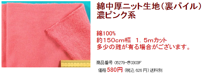 綿中厚ニット生地(裏パイル)濃ピンク系