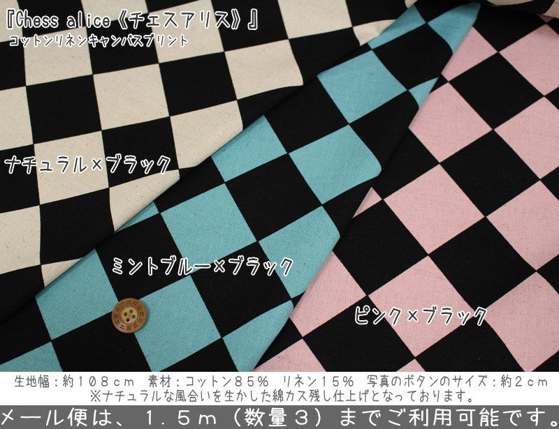 『Chess alice《チェスアリス》』コットンリネンキャンバスプリント素材コットン85%リネン15%生地幅:約108cm綿麻/女の子/格子柄/キッズ/生地/ハンドメイド/手作り/入園/入学/服/ウェアー/小物