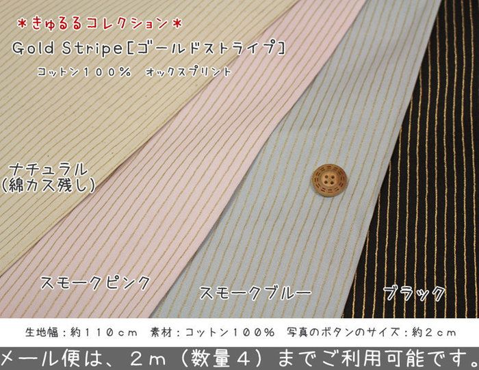*きゅるるコレクション*『ゴールドストライプ』コットン100%オックスプリント素材:コットン100% 生地幅:約110cm