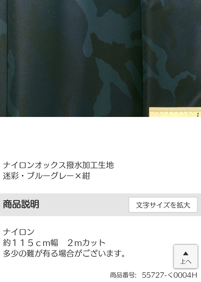ナイロンオックス撥水加工生地迷彩・ブルーグレー×紺