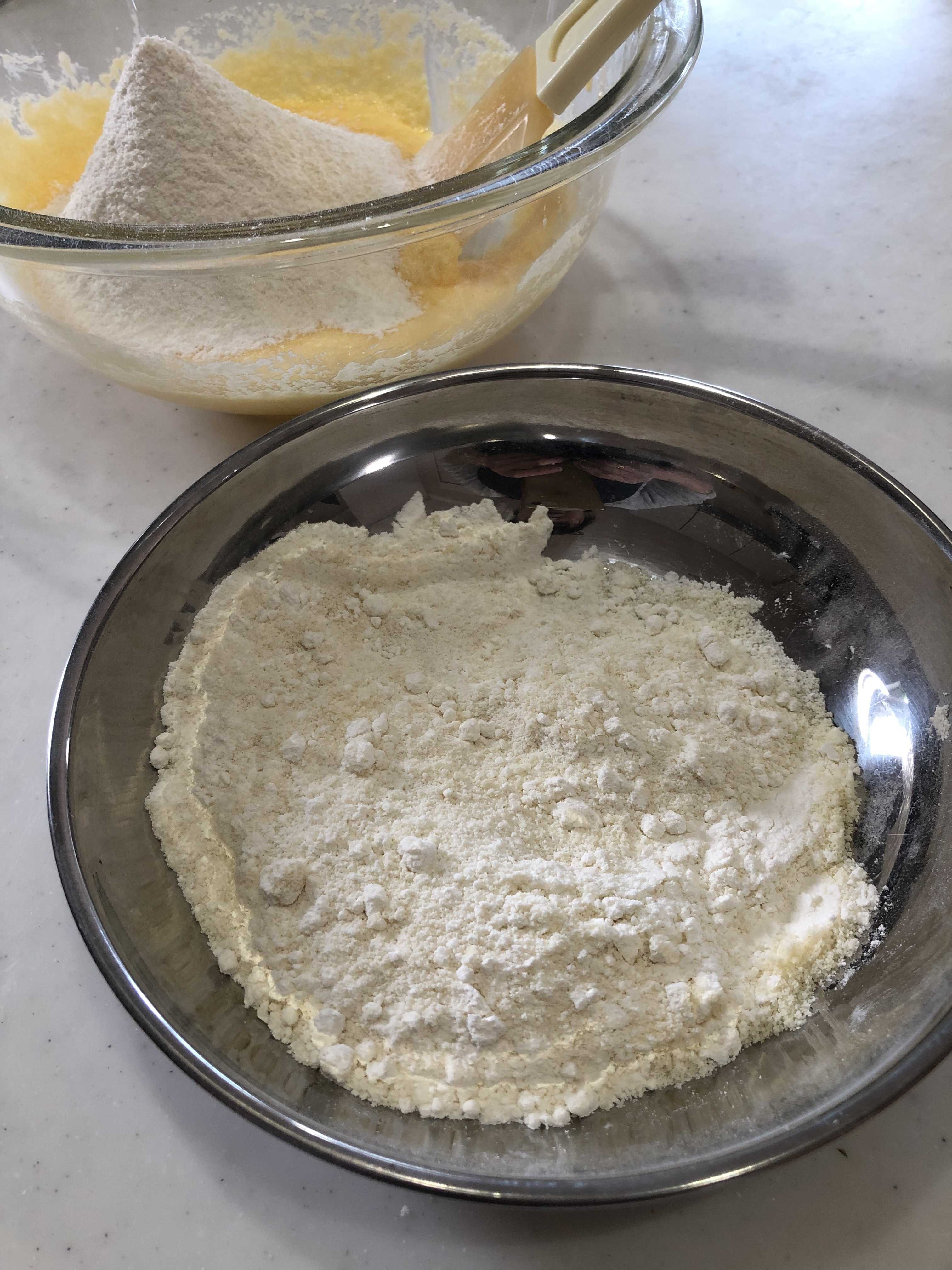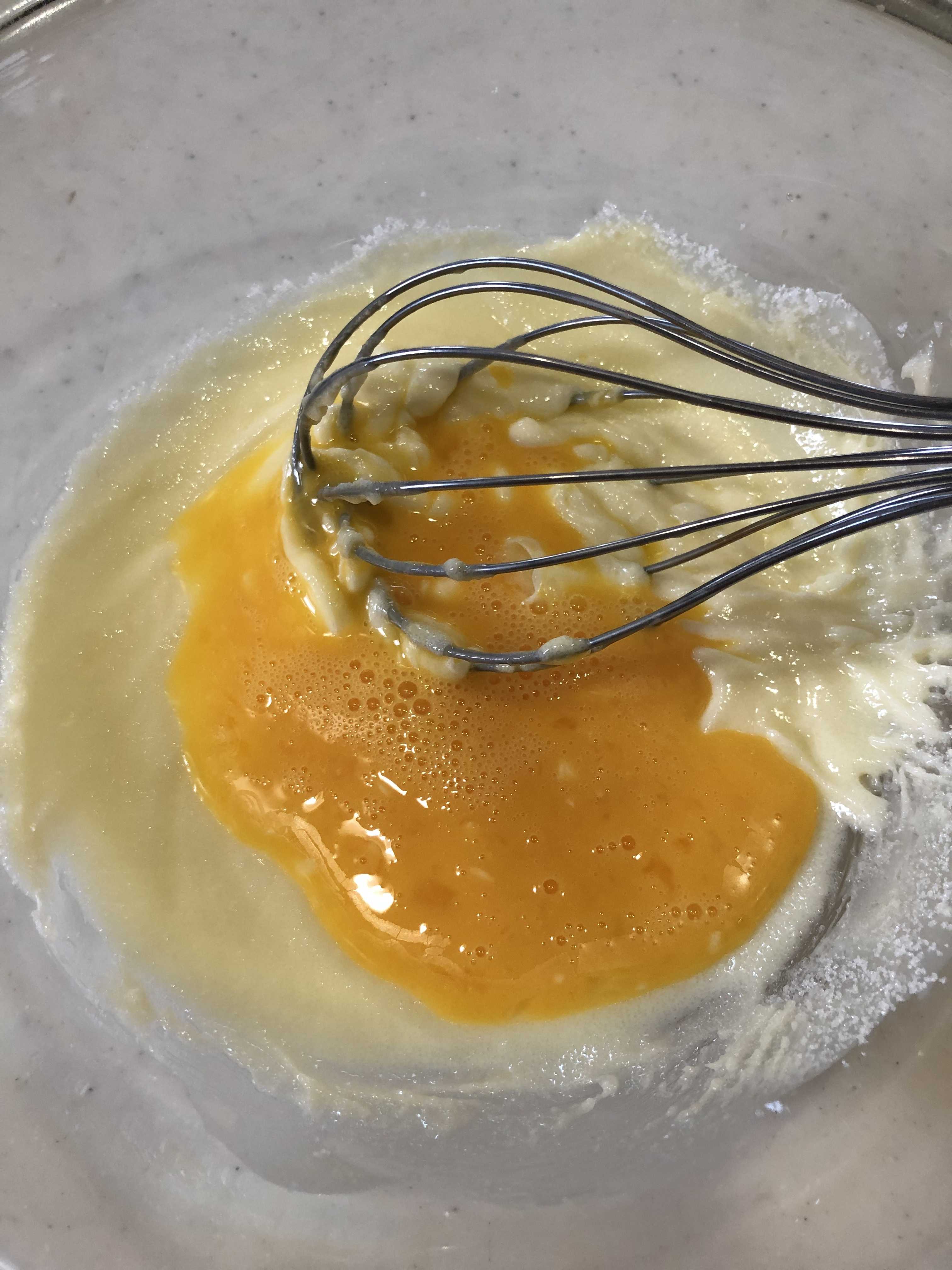 4.バターに砂糖を入れて白っぽくなるまで混ぜる