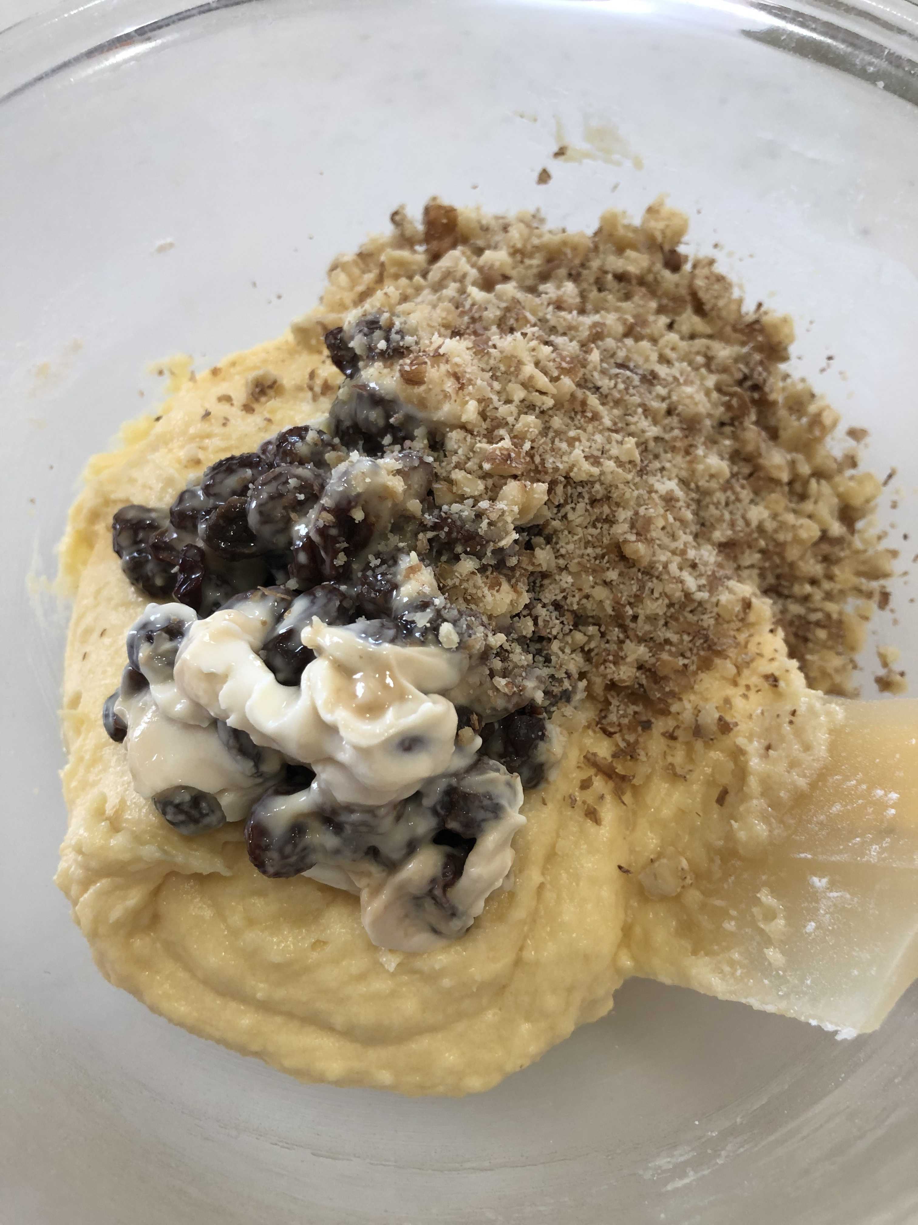 7.ヨーグルト漬けレーズンとクルミを混ぜる