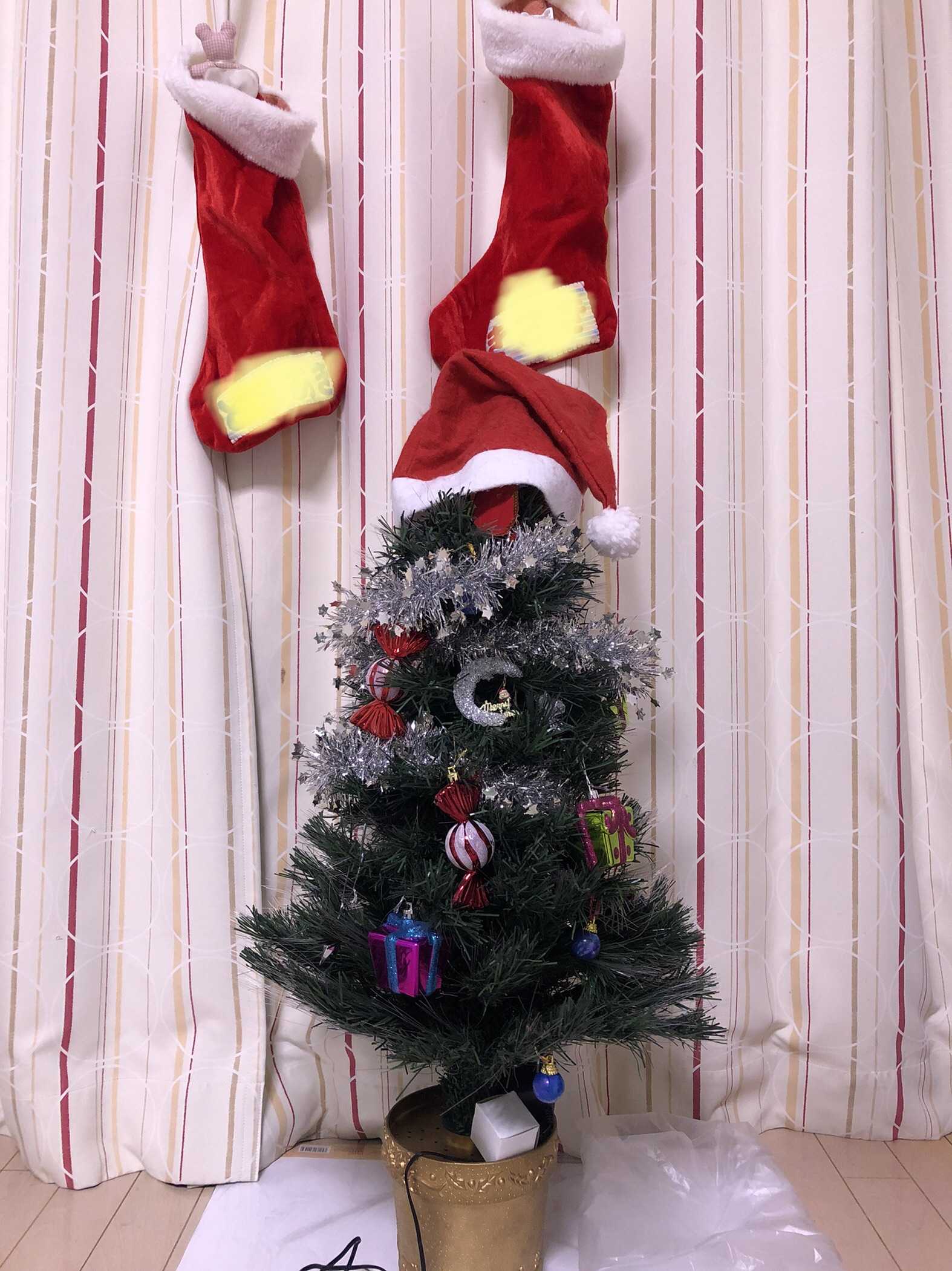ぎりぎりに子供が飾ったツリーと靴下♬