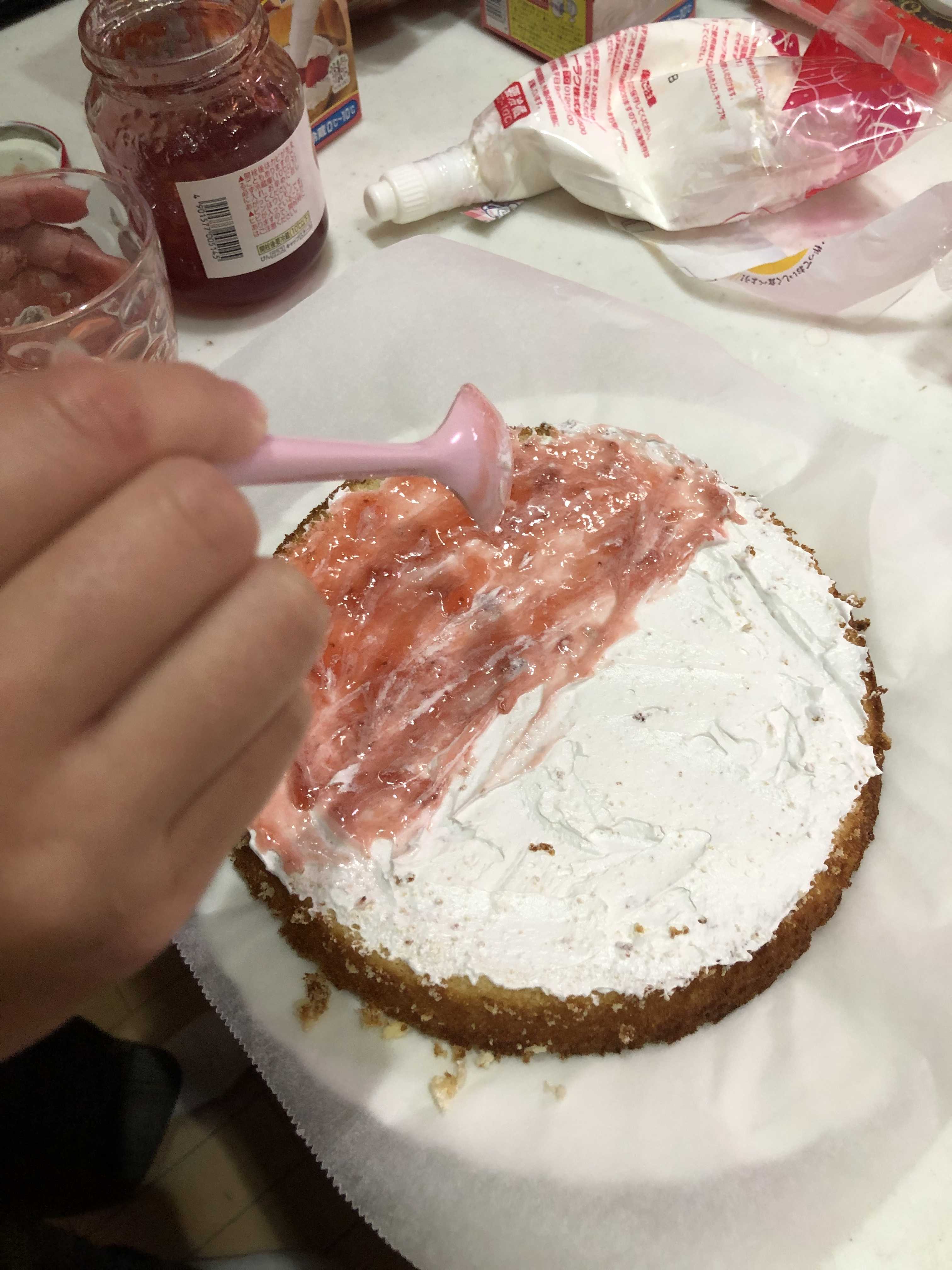 3.イチゴジャムをぬる