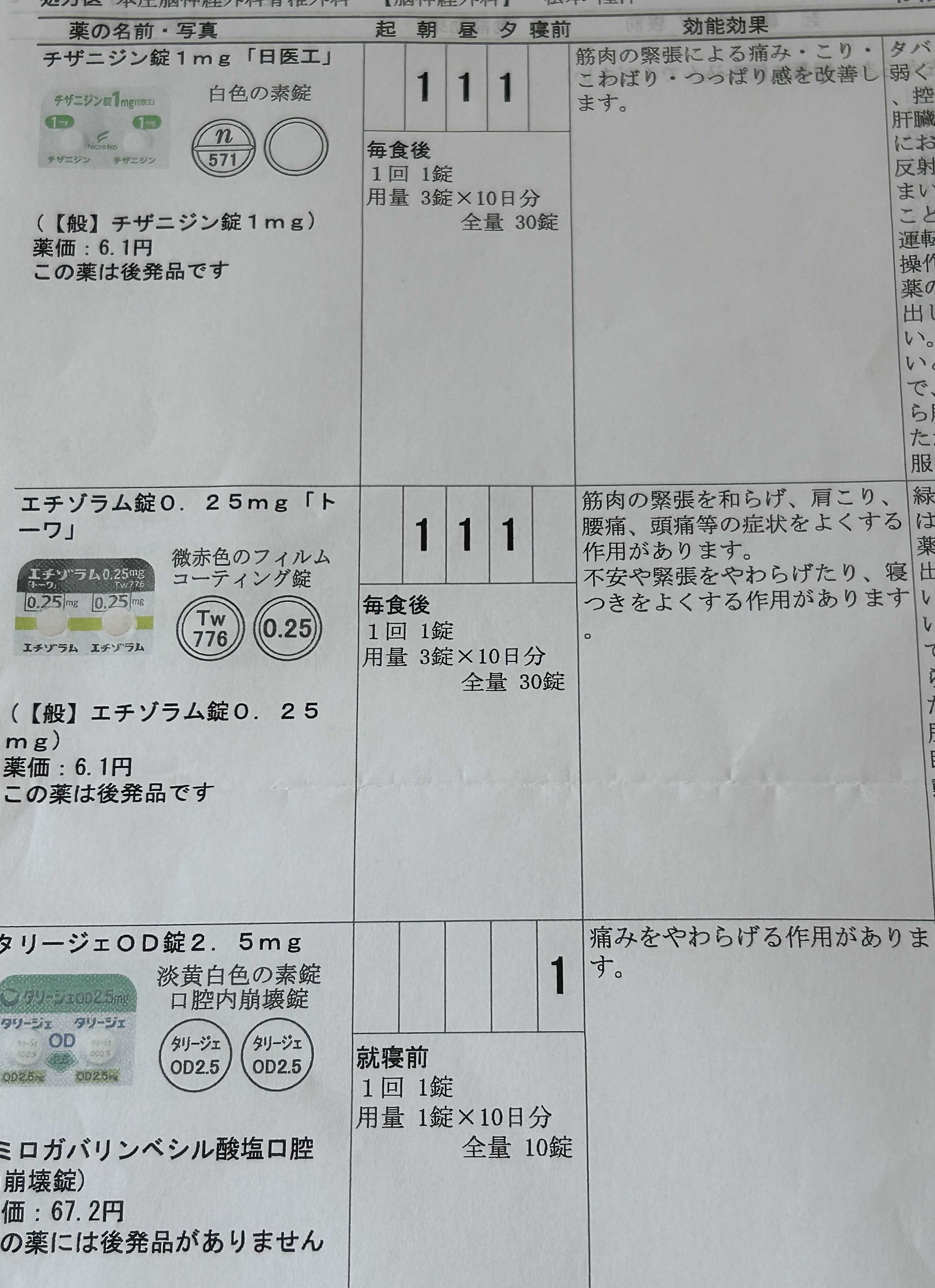 これらのお薬で様子をみることに…。