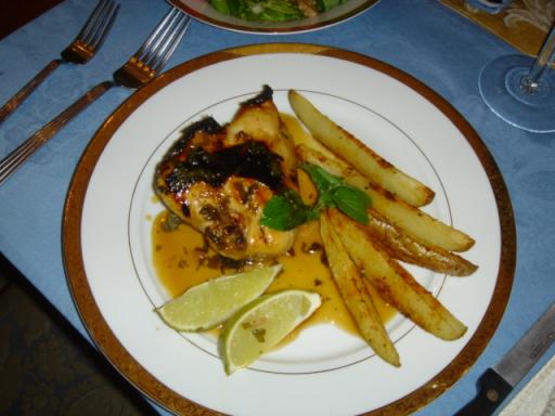 Mojito Chicken モヒトチキン3~4人前(倍の量で丸一羽マリネ出来ます)ライムジュース 大さじ6ラム酒(ダークでなく、ライトラム)1/4 カップ+大さじ1ミントの葉 大さじ4 みじん切りミントシロップ(ミント酒&砂糖、砂糖だけでも)大さじ3 ミントシロップを作ってみたい方はこちらから。オイル 大さじ1.5あら塩 小さじ1.5骨付きチキン胸肉(なければ他のパーツでも)3~4枚 密封出来るプラスチックバッグに材料を入れて、冷蔵庫で4時間マリネします。マリネ液から取り出してグリルかソテー。残ったマリネ液はフライパンで煮詰めてソースにしましょう。