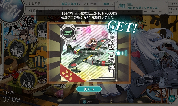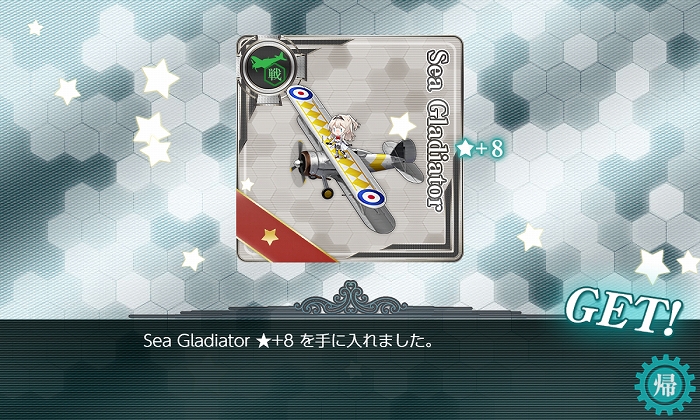 上位の水戦だ! 嬉しい! とはいえ制空値的には強風改★MAXと同等なので改二には劣りますね。最上に乗せた時の装備ボーナスが強いらしいので制空値に余裕ある時はいいかも。