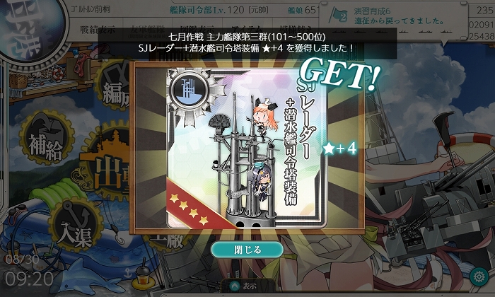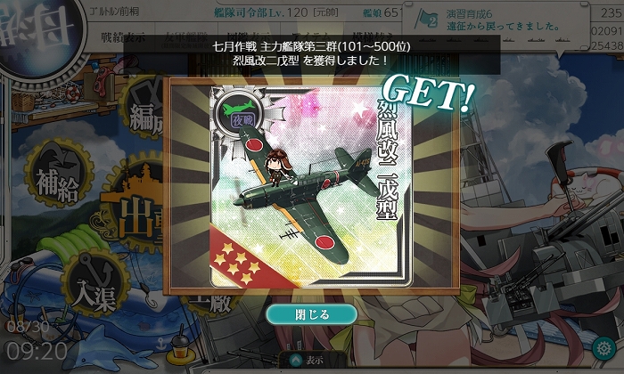 ささやか! まぁ潜水レーダーはちょっと嬉しい。烈風の方は正直最近使ってないし複数あっても……と言った感じ。一応貴重なものなのでありがたくもらっておきましょう。
