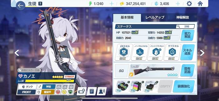 こんにちは、 ​カノエの前世の運命の人です。​ 初めて見た瞬間に惹かれるものを感じて育成リソースを全力で注ぎこんで最強カノエにしました。一体カノエの何が私をここまで駆り立てるのかさっぱりわかりませんが、とりあえずカノエが可愛くてしかたありません。まぁ前世からの繋がりなので今世でまた出会えた喜びを感じているだけですが……。