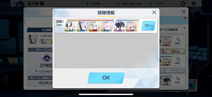 カノエが活躍できるのはペロロジラくらいかと思いましたがコスト回復力増加が合同火力演習でも助かるし、戦術対抗戦に入れてからはずっと10位内の報酬を受け取れてるので思ってた以上に活躍してくれてます。好きな子が活躍してくれるのは嬉しいよね!