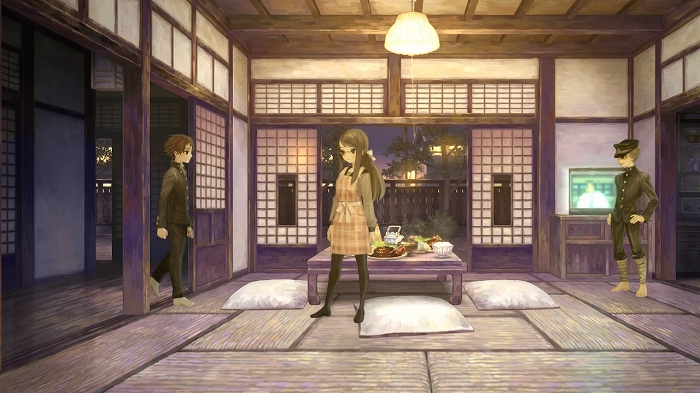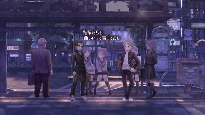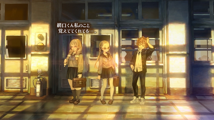 追想編……アドベンチャーパートなのですがよくある人物の立ち絵と文章という形ではなく、一枚絵のフィールドを自由に歩けてその中で会話劇が繰り広げられるといった感じ。2D絵ですが奥行がある動き方ができるので探索してる感が出て好きです。