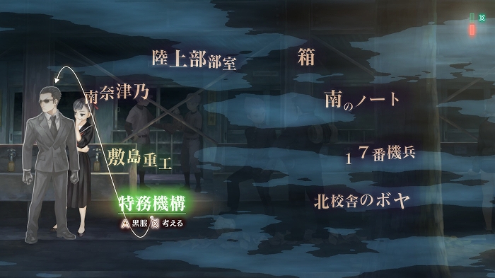 追想編での特徴的なシステムが「クラウドシンク」と呼ばれるキーワードを集めて使うシステム。場面によって考える、あるいは特定の人物にワードをぶつける事で話が進んでいきます。