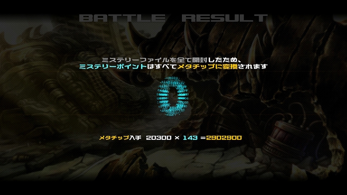 クリアー後に余ったミステリーポイントは全てメタチップに変換される。莫大な量が貰えるので:機兵の全スキルMAXまで上げても余ると思います。