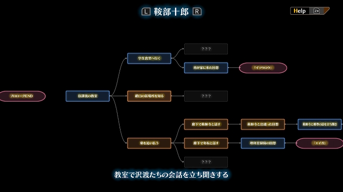 進行中はいつでもこの分岐表が見れるので先の進め方がわからないという事もなかったですね。分岐の多さの割には進行しやすい印象でした。