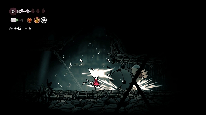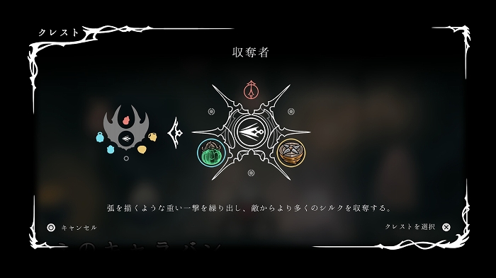 もう一つ大事なのがホーネットの動きまで変わります。ダッシュ攻撃が斬り上げになってたり空下が前作に近い感じになってる。こっちのほうが動きやすいですね。重い一撃とあるが攻撃力が上がってる感じはしないような……?