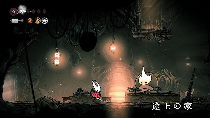 途上の家という休憩所を発見。ずっと暗い場所だったので落ち着く明るさですね。