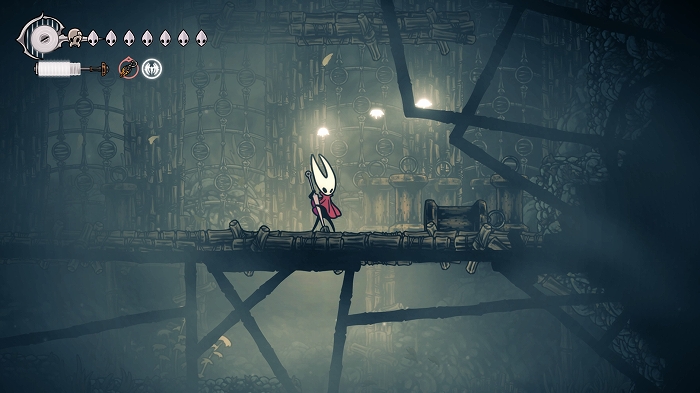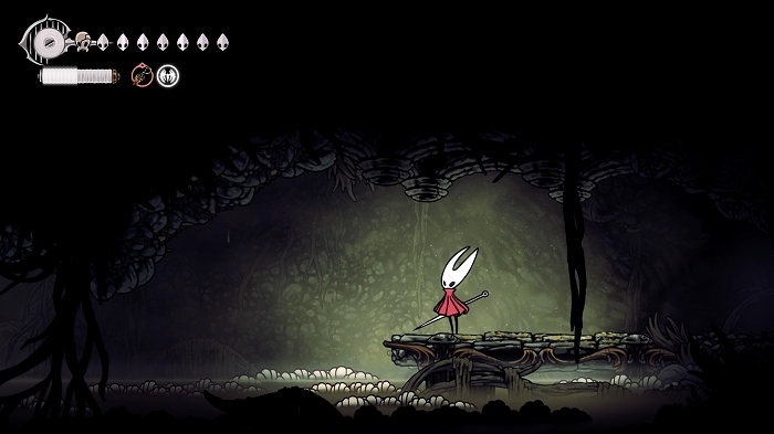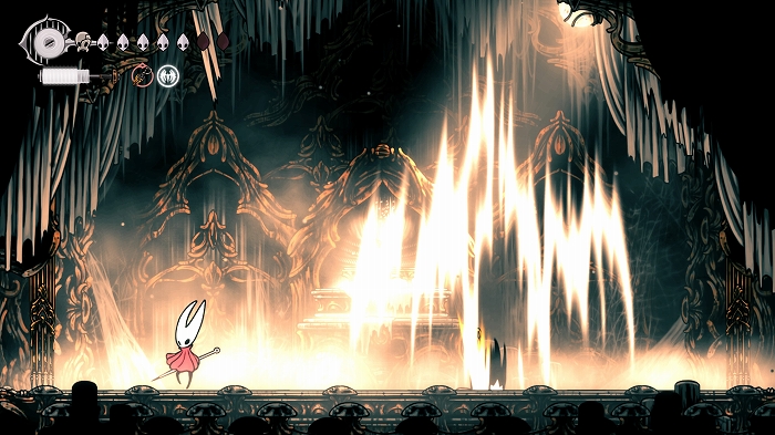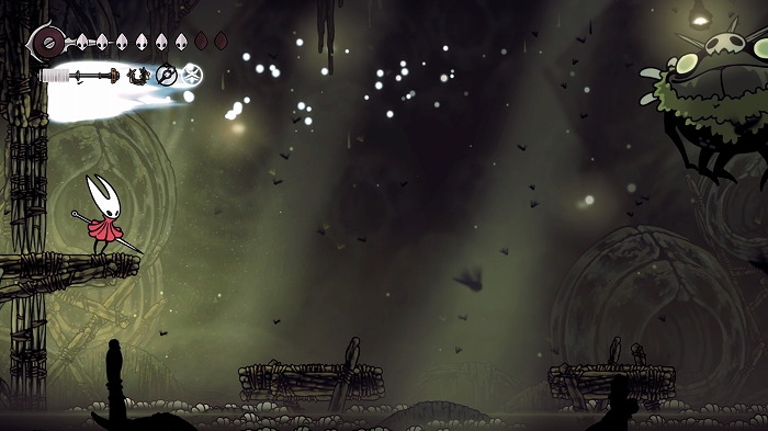 彷徨ってる内に思いついた事があります。これまでも白いシルクの欠片のようなものにニードリンを使うと声が聴こえる事があったので、この白い蝶にも使用。するとホーネットを導くように白い蝶が出口に移動しました。なるほどこれについていくと正しい出口に進めるのか。