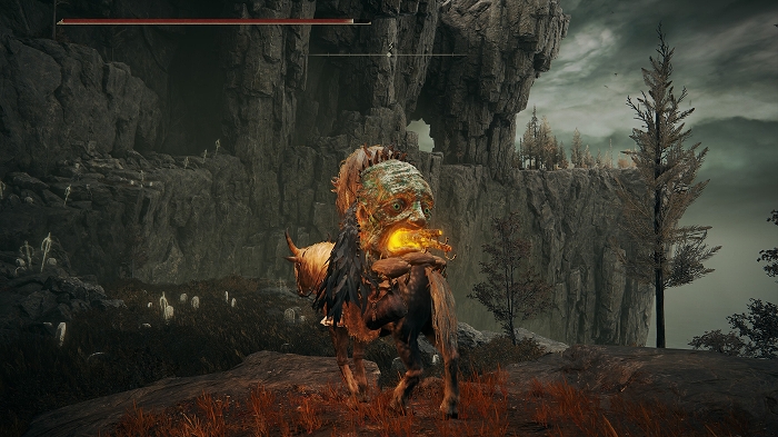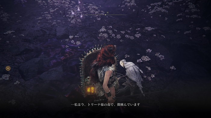 青海岸の探索を続けていきます。亜人っぽいやつが背を向けて突っ立ってたので「さくっと殺っちゃお~♪」って感じで襲ったら、返り討ちにあって殺された。剣を持ってるこの亜人強いんだけど! 戻ってきて慎重に戦って倒しました。見かけで相手を判断してはいけないね。海岸では「亜人の女王マルガ」がいた。気を付けることは特にないです。適当に倒しましょう。取り巻きを先に殺しとくと安全に戦えます。それにしても青海岸に点在してるこれはなんなのでしょうね? 巨大な棺? 中に何が入ってるのやら。カロの隠し墓地まで戻ってきたら「死儀礼の鳥」に遭遇。こいつと戦うの何回目だろう。北西の方に行くと何やら牢獄のような籠が散らかってる道が……奥には洞窟があります。洞窟は「嘆きの牢獄」名前からして嫌な感じしかしない。やっぱり壺の中身がいたよ!! こいつら驚かせるように急に出てくるからやだ!!下層では死体が泥のように積み重なって、周囲で壺人がわちゃわちゃしてました。なんなのこの惨状……小さい壺は遊んでるのか?ボスは「嘆き人」小さくて弱そうに見えますが、実際ただの雑魚です。殴りつづけてれば倒せます。しかしすぐに姿を消したかと思うと、今度は分身して現れた。しかし増えても雑魚のままなのでかまわず倒しましょう。消えては分身して出てきてを繰り返すのですが、いつの間にか自分の頭の周りに何かが浮かんでる……。そして唐突に嘆いて即死した。原因が全く分からない、この浮かんでる変なのが関係してるのか?ギミックがよくわからなかったのでとりあえず分身全てを皆殺しにしてたら倒せました。まぁ動くやつを全部殺せば勝ちだからね!(脳筋)再び青海岸へ。最南端の方へと向かっていくとチンアナゴみたいなやつと、壺を投げてくるトロルが出迎えてくれます。トロルは鬱陶しいので倒す。地下深くまで降りれそうな穴を発見。また地下都市があるのかな……。穴は「石棺の大穴」に繋がってました。なんでこんなに棺があるんだろ。入口付近には血鬼がいた。よく見ると顔が怖いなこいつら。ミケラの十字がこんな所にも。「我が愛を棄てる」愛などいらぬ! ですねわかります。それにしてもすごい風景だ……。この雰囲気好きですね。この棺がどこから来たのか、何が入ってる棺なのか、どうしてここにきて壁にめり込んでるのかさっぱりわかりませんが……。爆弾岩が群れてる……。一旦近づいてすぐ離れるか、駆け抜けていきましょう。道中には高速レーザーを撃ってくる岩芋虫もいるので注意。爆弾岩ゾーンを抜けると、何故かこんな所に混種の騎士がいた。なんでだろう……。最奥では大量の動物がスヤスヤ寝てます。近づいても逃げたりしないし、祝福が近いので思う存分素材がとれますね!!!祝福から石棺の先端部分に立つ。やる事は決まってる……。飛び込むんだよ!!!!!!!!!!!!!!!落ちた先でボス「泥濘の騎士」です。馬に乗りながらよくわからん動きをしてきます。馬と分離した際に突進してくる馬攻撃を避けた後や、叩きつけからの薙ぎ払い後が反撃しやすいです。後半から氷結効果ありの青い炎を広範囲に撒いてきます。よくわからないのが長い溜め動作から3回炎範囲攻撃をしてくるやつ。回避できそうにないので密着してガードで耐えてました。円状に展開して外から内に燃えてくる炎は回避できます。泥濘の騎士を倒して奥に行くと、よくわからない格好してる植物みたいな人がいた。話しかけると「蜜を吸う」の選択肢が……もちろん吸います。甘くておいしそうですね。突 然 の 死なんで死んだの? なにもわからない……。近づいてよく観察してみたがこいつ体はどうなってんだ? ものすごいぐねってそう。そしてしょうこりもなく蜜をチューチューして死んでを繰り返してたら、ついに話しかけてくれるようになりました。ミケラを止めて欲しいそうです。周辺に大量に咲いてる蜜血の木の芽の説明文からして、この人はトリーナのようですね。まぁミケラとどういう関係かよくわからんけど、頼まれたからには引き受けましょう。ミケラを殺す(止める)! ヨシ!ではこんなとこで(´0Д0)ノシ光が~の朝子、可愛い。