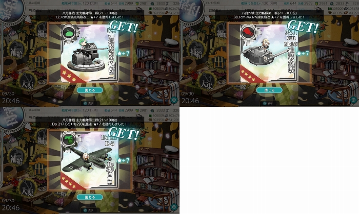 九月作戦 主力艦隊第二群に入りました。今月は早めに配られましたね。新しい陸攻が配られた! しかも強くて嬉しい! でも名前が長すぎるからなんて呼んだらいいかわからないね。FritzXにならぶ爆装で命中はこっちがちょっと上。対空射撃回避補正もある強機体らしいです。改修値つきなので先月頑張ってよかった~!今月はとりあえず500位以内は確実。戦果任務を使えばまた100位以内狙えるかも? という位置にいますがもうちょい様子見て判断します。いよいよイベントが始まるし秋刀魚漁も始まるので頑張っていきましょう!ではこんなとこで(´0Д0)ノシXの艦これ、C2機関のアカウント運営してるやつをさっさと変更しろ。