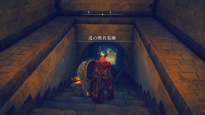 またもや迷子になって彷徨う日々が始まりました。墓地平原南西辺りの高台にどうやったら行けるのか周囲を探索していたら、ムーアがいる場所から崖のような道があるのを発見しました。中々にわかりづらい道ですね。道を進んでいくと「眺望街」を発見。中には多数の血鬼が待ち構えています。血鬼の住処なのか?宝箱にはタリスマン「外なる神の伝承」があった。未だによくわかってないのですけど、この世界って色んな存在が外=宇宙から降ってきてこの地で神として信仰されてるって感じですよね。外から来た神が影響を及ぼすという点はSEKIROにも似てるなーと感じてます。眺望街から少し離れた所には金色の羊がいました。毛皮が高く売れそうだな……狩るか。強欲な褪せ人を親金色羊が襲う!! ていうかデカイ!!! なんだこの羊!! バチバチ雷纏ってるしこの地の野生生物怖すぎだろ!!!電気羊の群れを抜けていくと「恵みの教会」がありました。まぁ教会があるってだけで特別な何かは見つかりませんでした。そしてここで行き止まりなのでまたもや行先を見失ってしまいました。エンシスの城砦から南東側を探索してたらミケラの十字とティエリエという人に出会いました。この人もレダの仲間でしょうか。さらに南へと進む道の途中ですごくうるさい人を見つけました。うずくまって何事か叫んでます。マジでうるさいので気づかないって事はないと思う。話しかけても叫んでるだけなのでよくわからん人だ……。放っておいて南へ行くと、「竜の穴」を発見。中にはファルムアズラにいたスケルトン獣人がいる。竜信仰があったみたいだし何か関係があるのかも。溶岩土竜もいました。雑魚扱いなので倒さなくてもいいのだけど狩っておきましょう。崖を前に「恐怖を知らぬ、勇気を示せ」のメッセージが。これはもうすぐにわかりますね。つまり、崖から飛び降りろって事だよおおおぉぉっ!!!!!もちろん飛び降りても死なないです。そしてボス「古竜人」と遭遇。竜の頭を出す攻撃を食らうと即死するので絶対に避けましょう。それ以外を適当にガードカウンターしてれば倒せます。洞窟を抜けるとついに「ギザ山の麓」に到着! あの山にやっと来れた!!すぐに「ギザ山の飛竜」に遭遇。雷を落としてきますが馬に乗りながら適当に斬ってれば倒せます。崖から下を眺めるとものすごく怪しげな岩が乱立してる場所が見えます。岩っていうかこれは指か……? ものすごく不気味な場所ですが同時にワクワクしますね。竜と戦った場所から南へ行くと「竜餐の大祭壇」に出ました。とんでもなく巨大な竜が死んでる。ロマンがありますね!祭壇には竜っぽい人がいた。この人はプラキドサクスという存在に仕えてるらしく、この山にいるベールという竜を倒して欲しいそうです。ベールってさっきの道端でわめいてた人も言ってたな。色んな所から恨みをかってる竜なのかな。竜餐の大祭壇から南西に行くと「カロの隠し墓地」に出ました。赤く不気味に輝く花が目立ちますが、幻想的で美しい場所ですね。カロって誰なのかが気になります。水辺には雑魚としてティビアの呼び舟がいた。今更苦戦する相手でもないからね。さらに進んでいくと「青海岸」に出た。赤い風景からいきなり青くなるのでそのコントラストで印象が強くなりますね。青だけが目立つモノクロの世界でこの世の風景ではないようです……。まぁこんな所でも霊炎竜が暴れてたりするので感傷に浸ってる場合じゃないのですが。あとどっかの地下墓のボスだった墓所影が雑魚敵としている。黒いので気づきづらいです。怪しげな穴を発見。降りていき進んでいくと対岸の小島に出てきました。小島には「南の無名霊廟」があった。中には「ラーナの踊り子」がいた。炎を使ってきますがガードカウンターしてれば倒せます。そして踊り子装備を入手したのですが………………うーーーーーん、えっちくないな! 砂の呪術師的な装備が欲しかったんだけどなー!! 今装備してる剣と盾が絶望的に似合わないというのもある。ではこんなとこで(´0Д0)ノシガチアクタのリヨウ好き。