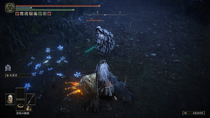 エンシスの城砦の周囲を探索していたら、「霧谷の砦」を発見。エンシスの城砦を守る場所なのかな?固定火炎放射台が複数待ち構えてる。特に怖くはない。ボス部屋でない所に「黒騎士ガルー」と遭遇。舌を伸ばしてくるわけのわからん技を使ってきます。特徴的なのがそれだけでとても弱い。なんなんだこいつ……。そういえば墓地平原北西辺りの巨大な門から先へ行ってないと思い来てみたら知らない人、ムーアがいた。仲間だと言われても初対面ですが……。ミケラを追ってる人達の仲間ですかね?ムーアがいる先の建物に入る。なんか祀られてるし宗教的な建物かな。そして奥からカサカサカサカサ……と嫌な音が聴こえてきた……。う˝う˝う˝うううう˝う˝っぅぅぅ˝ぅぅ˝ぅぅ!!!!!!(発狂ゲージMAX)小さいサソリの群れが大挙して寄ってきた。くるんじゃねぇ!!!!サソリを蹴散らして先に進むと「塔の街、ベルラート」に来ました。入口に狛犬みたいな小型ライオンっぽいのがいて可愛い。街中には影人が多数。体型がゴツくて棍棒で殴りかかってくるやつもいます。地下水路には死体が山積み。まぁこの世界ではいつもの事ですよね。倉庫のような部屋に寝てる人がいた。話しかけても無反応です。不気味な生首が置いてある……。でもさっきの狛犬に似てるかも?捻じれた木がある広場に来ると「火の騎士、クウィンライン」に侵入された。お前他の所で倒さなかったっけ? メスメルを殺ったのが余程恨めしいのか。倒すと祈りの間の鍵を手に入れた。影の城の教区にある扉の鍵らしい。後で行くとしましょう。塔の街と呼ばれるだけあって立派な塔がある。ここを登って最上層を目指します。そしてボス部屋に入ると……何かが寝転んでいる。この頭はさっき倉庫で見たやつだな。中に人がいて動かしてるようだが……獅子舞みたいですね。本当に獅子舞だった! 「神獣獅子舞」です。ただの獣とも人も違う独特で奇妙な動きをしてくる強敵です。相手の動きのテンポをよく把握しましょう。歯をかちかちしてからの突っ込みは拘束攻撃なので避けよう。立ち上がって周辺ぐるぐるブレス後は隙あり。3回転目に潜り込むように回避で近づくと攻撃しやすいです。他にはモンハンのトビカガチのようなサマソ後も隙ありです。神獣獅子舞の真に恐ろしいのは体力をある程度減らすと、風を操り、雷を操り、冷気まで操る複数属性の使い手なのです。なんでそんな事できるの!? 動き方も変わってくるので多彩な攻撃に惑わされないよう注意です。焦らずに3連突進後のブレス後や属性変更後の隙を確実に狙っていきましょう。倒すと神獣の頭が貰える。でかすぎてちょっと面白い。聖杯瓶の回復量が減るデメリットがあるけど気に入ったのでしばらく装備してよっと。奥に進むと影の樹の枝? で阻まれて進めなかった。狭間の地の出来事を思い出しますね。もしかして影の樹を燃やすと先に進めるようになるのでしょうか。しかしここで行き止まりか……。とりあえず影の教区の祈りの間の鍵で入れる所に来ました。クウィンラインが寝てたので話しかけるとアイテムを使う選択肢が出てきた。祝福の瞳膜を使うと遺灰がもらえました。散々襲ってきたくせに協力してくれるのか……。まぁいいですけど。じゃあこの地の道案内してくれない?(迷子褪せ人)ではこんなとこで(´0Д0)ノシウィッチウォッチの伽羅ちゃんいいよね……。