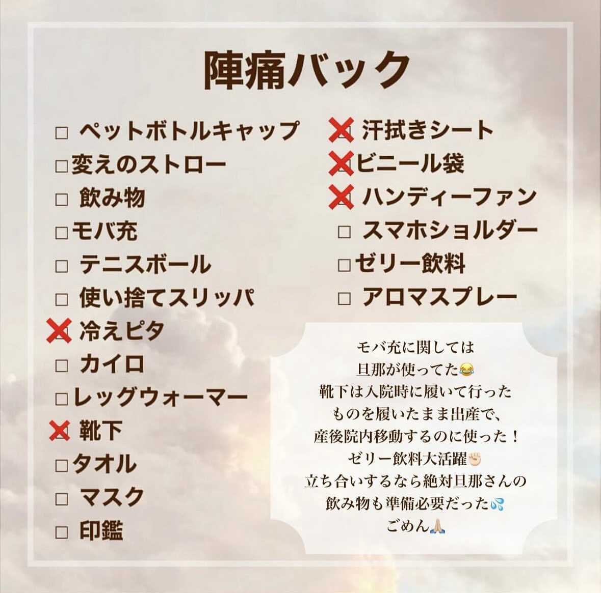 入院バッグ&陣痛バッグやっと完成👜✨やっと…やっと入院バッグと陣痛バッグをまとめました!心配性すぎて、気づけば荷物が多めに😂本当は1つにまとめたかったんですが、産院指定の「持参必須ナプキン2袋」が大きすぎて、どうしても分けることに…。荷物の工夫ポイント💡🍼 オムツなどの消耗品病院で用意してくれる分が足りなくなったら、家族に持ってきてもらう予定です。🧺 洗濯ネット病院が洗濯してくれるとのことで用意しました!洗ってほしいパジャマや下着には名前タグを付けました✏️🧸 ファーストトイ洗濯後なのでビニール袋に入れて持参。☕ 飲み物&食べ物お部屋にポットがあるので、スティック飲料やフリーズドライのお味噌汁をIN。ゼリー飲料は多めですが、入院中の間食や産後のおやつにも◎バッグの中身リスト📋写真に写っていないアイテムもありますが、持っていくものはすべてリストに書き出しました✍(作っている途中で「あれ、入れてない!」と気づくことも…笑)産褥ショーツ、パジャマも3枚の指定あったけど、午前中に洗濯出したら夕方には届けてくれたから2枚しか使わなかった💦これから出産される方の少しでも役に立てたら嬉しいです💖出産頑張ってください🌿