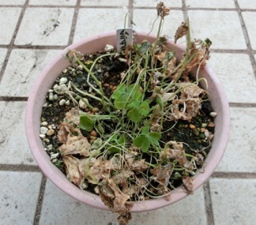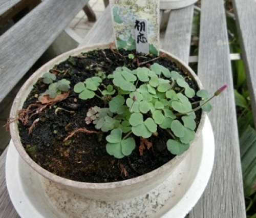 今日は気温-1~8℃、晴れである。明日は気温-1~9℃、晴れの予報である。鉢植えにしたムラサキカタバミに新しい葉が出てきている。(ムラサキカタバミの鉢。枯れてきた葉を片づけると、)(新しい葉が出てきている。)花期は主に夏であり、新しい葉は春まで出てこないものと思っていたので、ちょっと以外である。このムラサキカタバミは庭に自然に生えてきたものを鉢植えにしたものであるが、花が咲いている時にしかまともに見てなかったので今まで冬に出てくるという認識はなかった。ムラサキカタバミは南米原産で江戸時代後期に観賞用として渡来したものであるそうだが、今は日本各地で繁殖してほとんど雑草扱いなっている。・・・学名はオキザリス・コリンボサである。(暮れに季節外れに開花したムラサキカタバミ。)・・・・・(オキザリス・セルヌア。これも自然に生えてきたもので一部を除いて年中引っこ抜いている。)(オキザリス・バリアビリス。これも自然に生えてきたもので増殖している。)(オキザリス・バーシーカラー。)(オキザリス・桃の輝き。)・・・・・・(ストック。)(マラコイデス。最初に咲いた株は花茎が4本伸びている。)(ミュウが掘り返すので3年ぶりにチューリップの植付け地にネットを張った。先日階段の上に張ったのはミュウのための安全ネットであるが、今日のはチューリップのための安全ネットである。)