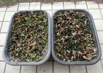 今日は気温15~20℃、雨である。明日は気温14~20℃、曇りのち晴れの予報である。9月に球根を植えたリューココリーネ・アンデスがようやく発芽した。(発芽したアンデス。)昨年は10月4日に発芽して、さらに10月22日には同時に植えたリューココリーネ・ストライプブルーが発芽したのにかかわらず、アンデスは一向に気配が無いので半分諦めかけていたものである。15球植えたうちのまだ1本だけであるので、後続が早く発芽するのを期待したい。開花は4月の予定である。(今年4月のアンデス。)(こちらは先に発芽したリューココリーネ・ストライプブルー。)・・・・・・ブラキカムの切り戻しをした。(切り戻し前のブラキカム。)(まだ花がチラホラ咲いているが、)(根元に新芽がだいぶ育っている。)(ところが、左上の鉢の苗をちょっと触ったら、スッポリ抜けてしまった。)(やっぱり土の中にいた。定期的にオルトランを散布していたつもりだったが、抜けたか?)(気を取り直して、残ったのを切り戻し。)(新芽が年明け前に咲いているのは初めてのような気がする。)(また、補充のため10.5cmポット2個に5本ずつ計10本挿し芽をした。)・・・・・・(マラコイデスを24株定植。累計349株。)(さらに4株定植。累計353株。)