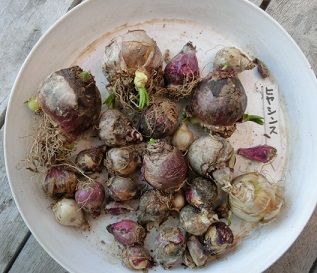 今日は気温2~9℃、晴れのち曇りである。明日は気温3~11℃、晴れの予報である。チューベローズの球根を掘り上げた。(掘り上げ前のチューベローズの鉢。2鉢ある。葉がまだ青いが毎年12月中旬~下旬に掘り上げている。)(掘り上げた球根。)今年も子球が無数に付いているが、来年3月の再植付け時には全部かき落とすつもりである。開花は8月の見込みである。(今年8月に開花したチューベローズ。)・・・・・・・(久しぶりに晴れた。太陽が出てないとチューリップも生長するような気がしないが、今日は少しは生長したかな?)(久しぶりに開いたバーシーカラー。)(ガーデンシクラメン。)(プリムラ・ジュリアン。)(バラ咲きジュリアン。)