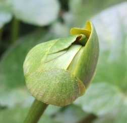 (ヒメリュウキンカの蕾。開き始めたようだ。)