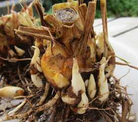 チューベローズの球根を掘り上げた。