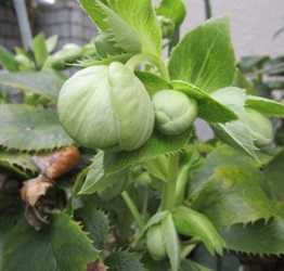 (クリスマスローズ・コルシカスの蕾。昨日ちょっと開いたのは今日もあまり変わらなかったが、)