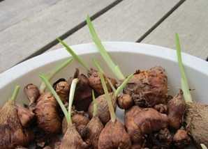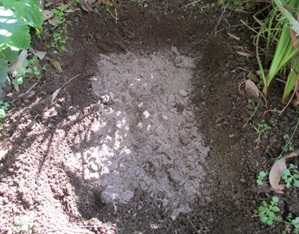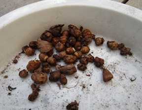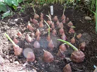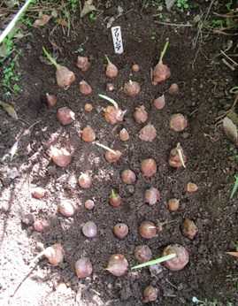 (油粕の上に薄く土を被せて球根を昨年と同じく約40球配置。)