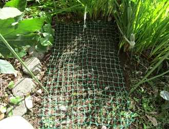 (土を被せてミュウの立ち入り防止用のネットを張ってから水やりをして作業終了。)