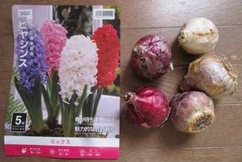 ヒヤシンスの球根は年々やせていくので毎年新しいのを追加したいところであるが、一昨年と昨年は手に入らにかったので今年は3年ぶりの追加である。