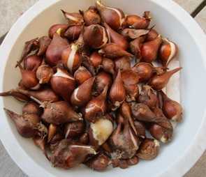 この球根は八重やフリンジ咲きなどのポット植え球根の子孫であるが、2年目以降はほとんど咲かないものの、ある程度大きいものは捨てるのが惜しくて植えている。