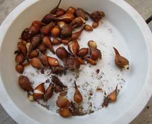 (第2陣のチューリップの球根。6月に掘り上げたものである。)