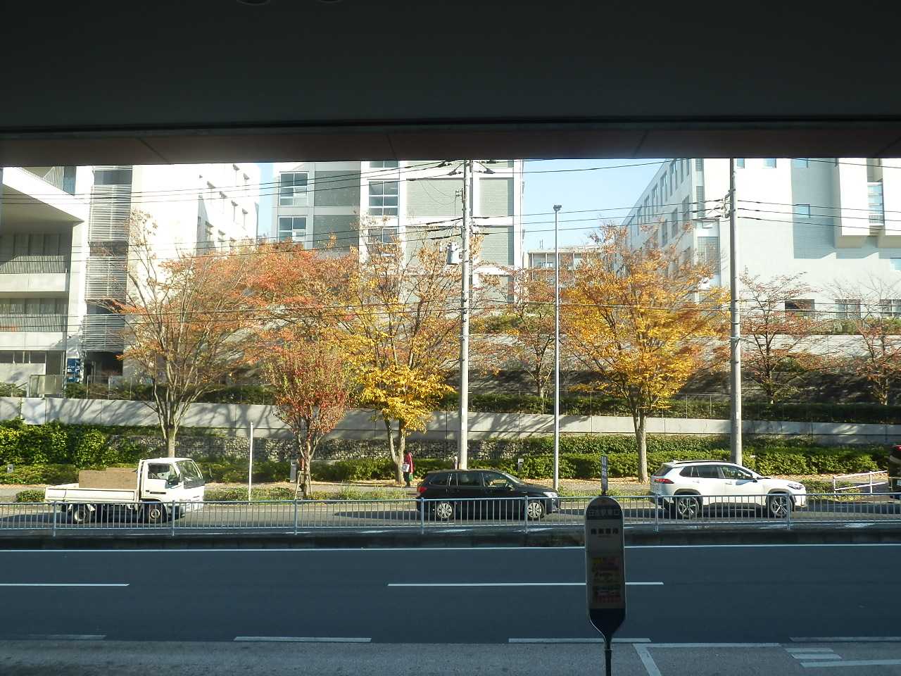 職場の近くにある大学の入り口が、スロープ(坂道)になっていて、写真の手前側に欅、奥…