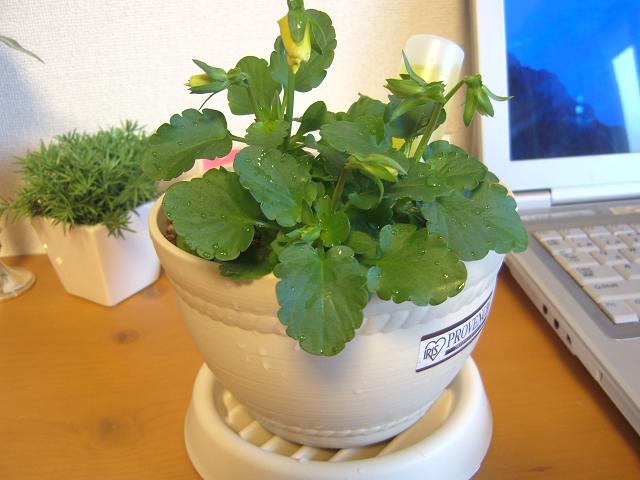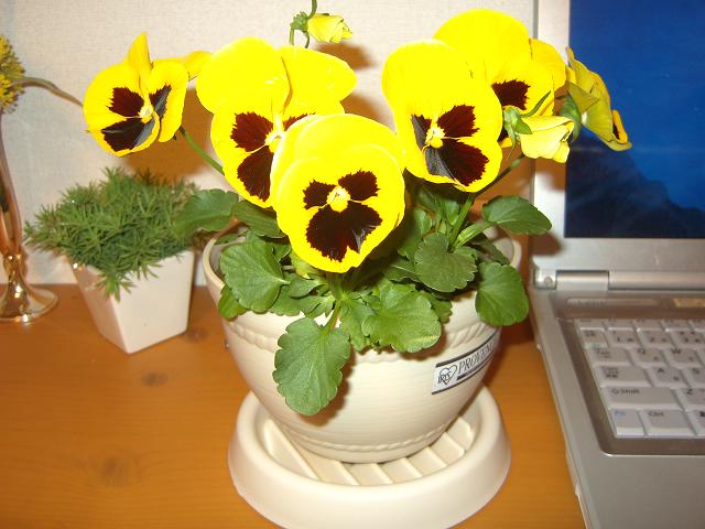12月。。サリーズカフェさんの3週年記念に頂いたパンジー実はこれ2代目(言い方が。。??)先代は4ヶ月間、毎日欠かさず次々咲いて目を楽しませてくれた。背丈が伸びすぎたので新目を残してばっさりカット。。そこから。。このパンジーが復活!!生命力ってすごいっ!!生花を育てるのは正直苦手だった。。ワタシ。病気になりかけたときはオルトランで消毒。こんなワタシのプチガーデニングっ。。