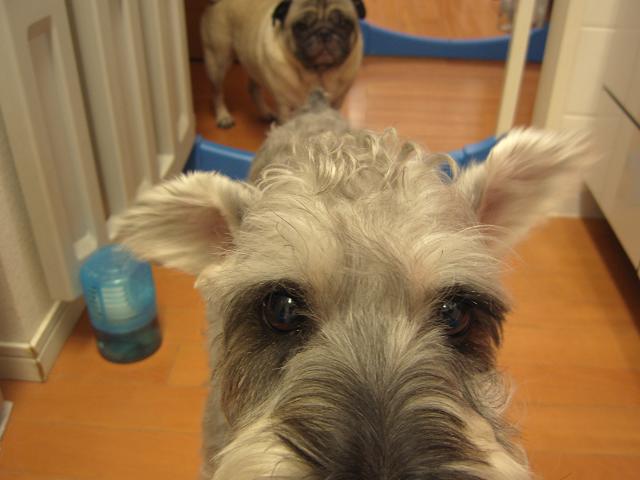 シュナウザー犬チャコは自衛隊姉御はだ。9月23日、静岡県藤枝市生まれ。今年7歳。シュナウザーは『のらくろ』のモデルに似ている。横顔がウインナーぽっい。のらくろの職業は自衛隊だから。。よくよく観察してると自衛本能がすごい。おまけに仲裁行動がすばやい。私が机に向かっている間は、どんなに遅くても起きている。これは子犬のときから変わらない。しんのすけ。。とっとと寝室でいびきをかいて寝ている。これも子犬のときから変わらない。びびりのしんのすけを姉御ちゃこがしっかり守っている。いつも本当にありがとう。。チャコのためにも早く寝よっと。。