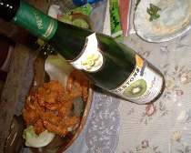 昨日の問題の写真は、これでした。ジャン!! えびも!!!正解は「ワイン」しかも「キウイワイン」ニュージーランドで買ってきたワインです。なんとずっと昔、我々が新婚旅行で買ってきたお土産のワイン。それを引っ張り出してきて飲みました。お腹は痛くないので大丈夫みたい。