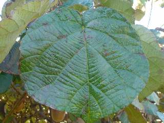 朝の写真の正解は、これですよ。キウイさん。いいですか??わかりましたか??もういっちょう!!えい。もうおわかりですね。正解はキウイでした。まこちゃんグッドです。1000万ゲット また小切手送るからね。キウイさんには特に見てもらいたかった写真です。家の近くの畑になんとキウイが。キウイの葉っぱってこんなにでかいんだって思いました。思わずカメラ無精の私がシャッターを押しました。とってもいいお勉強になりました。