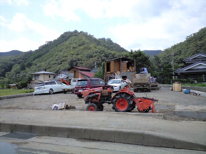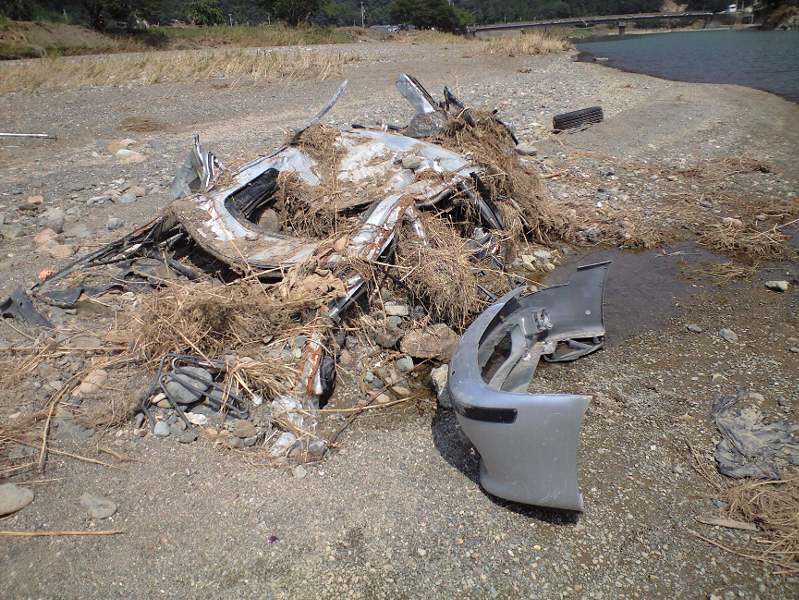 そのとおりです。田んぼには川から流されてきた車がぷかぷか浮いてここに着陸したということです。水の力はすごいです。化け物です。今回の洪水で車を水で流されたりエンジンに水が入り歯医者じゃない廃車となった方々がたくさんおられます(+o+)あいかわらず、子どもさんを見つけることができません。でも、今日は亡くなられた方々のかばんを見つけることができました。これって喜んでいいのやら悲しんでいいのやらもう尾崎の頭と体はパニくってます。みなさんのご厚情に感謝です。