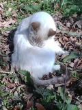 シャムちゃん。相変わらず来園者からエサとかをもらっていて元気です。(^^)さて、一万歩公園(架空名称です。)ですから、今回ももちろん一番の目当てはシャムちゃんです。(^^) で、探しに行くと居ました居ました。また来園者からエサをもらっています。(^^) で、とりあえず、その来園者の方が去ったあと、今度はワタクシと遊んでいただきます。(^^) 相変わらずじゃれたりなんだり可愛いですねー。(^^) そして今回は後足の肉球も撮影できました。(^^)ホーム