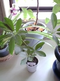 また100均で見つけました。斑入りホンコン。さてさて、ついにまた、シェフレラ・斑入りホンコンを100均で見つけました。(^^) この種類のシェフレラは、ホームセンターなどでは全然珍しくはないですが、100均ではちょっと珍しい種類だと思います。だからつい、やっぱり買っちゃいました。(^^ゞところで、やっぱりこれは嬉しい。なにせシェフレラ(カポック)は、自分は斑無しの緑のものや、ハッピーイエロー?、イエローウェーブ?といった種類はいくらか持っていても、この斑入りホンコンは1(それっぽいの含めて2)鉢しか持っていなかったんです。で、ちなみにその1鉢というのが、真ん中の写真。今年になって6号サイズぐらいの鉢に植え替えたら、20センチぐらいにはなりました。(^^ゞ そして今回見つけて買ったのが左右の写真。左の写真のものを5号サイズの鉢に早速植え替え、右の写真になりました。そしてちゃっかり今回は、下はいつも通りにそこいらへんの土ですが、上だけは格好つけて鹿沼土(100均の)なんかを敷いてみちゃいました。(^^)ホーム