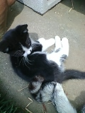 さて、いつもウチに来て、最近では半分飼い猫と化している三毛猫と黒こねこ。今日はその黒こねこをいつもより少し大きめ写真(QVGA)で紹介します。