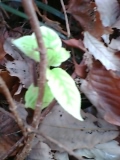 ではこんどは、葉っぱなどをもうちょっとアップで見てみましょう。(^^)さて、前回は木全体の写真でしたが、こんどは葉っぱなどをもうちょっとアップします。(^^) すると、どうでしょう。師走なのになんとまだ、緑色の葉っぱも付けています。(^^) でも、やっぱり落葉も進み、下を見るとマタタビの落ち葉がいっぱいですが・・・。ところでこの木というか、この株。もちろん夏には結実し、正常果と虫エイ果の2種類の果実をほぼ半々に付ける株なんです。そしてそのうちの、薬用効果が高いと言われる「虫エイ果」は、9月に相次いで落下します。だから、9月にこの木というか株の下をみると、虫エイ果実がいっぱい落ちていて、楽に拾うことができたりします。(^^)ホーム