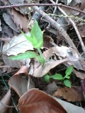 また見てきました。一万歩公園。まずは植物とかから。また一万歩公園を見てきました。まずは植物とかからです。で、まず、植えておいたマタタビ。地植え2株のうち、1株はしっかり生きていました。(^_^) 見てください。左の写真がそのマタタビの若葉です。(^^♪でも、5か6株ほどまとめて鉢植えしておいたマタタビ。こちらは無残に倒されて、全滅していました。(>_