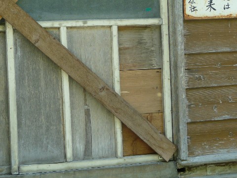 さて今度は、銭湯跡にやって来ました・・・ こちらは少しだけ変化があったみいで・・・ と言うより、こちらへの不法侵入が絶えないのか?(汗) 簡易的にですがバリケードが築かれ・・・ 立入禁止の看板はありませんが「敷地内に入るな!」と言う雰囲気が作り出されています!! 何度も書きますが・・・ ココは現役の鉱山の所有物です!! 勝手に敷地内に入れば、それは「不法侵入」ですからね! 軽犯罪法に抵触しますから!! 外から見る分には特に問題はありませんが・・・ とは言え、鉱山関係者の方々が仕事をしているときは邪魔にならないように細心の注意を払いましょうね! それと挨拶も忘れずに!!(願) さて、この銭湯跡・・・ 外観上は、去年よりも荒らされたりとかした形跡は増えていないようです。 ただ・・・ 穴が開いていた正面ドアが修理されていました!!(嬉) もしかして、このまま保存するための暫定処置? とか思っちゃいましたけどね・・・ でも、よくよく考えてみれば。 この近辺は野生動物の宝庫!! 夜中に小動物が入り込んだり・・・ あまつさえ・・・ 中に巣を作ったり、冬眠でもされた日には!!(困) それを警戒しての処置なのかもしれません!! とは言え、これ以上荒れないようにする処置には違いありませんから、解体の手は暫く伸びてこないのかと・・・ ちなみに去年の秋は・・・ 思いっきり、穴が開いてました(汗)
