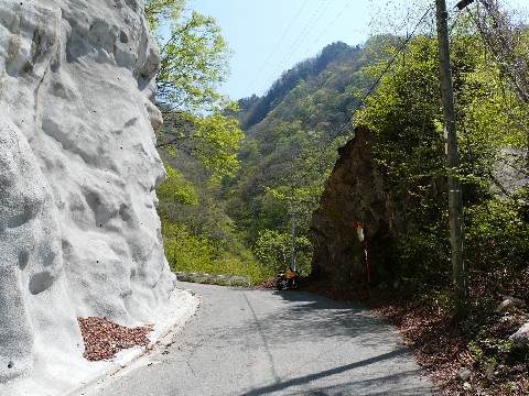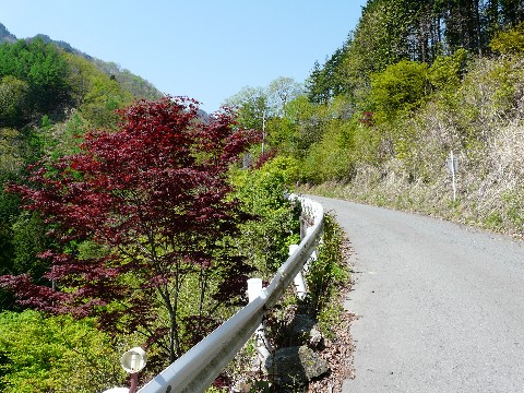 冬季通行止めが解除された営林用の林道などは・・・ まず「お約束」と言って良いほど、結構荒れています(涙)。 路面に砂や砂利が浮いていて・・・(滑) さらには、数々の落石!(汗) 特に・・・ ゴールデンウィーク終盤に降り続いた雨のせいで。 しかも3日間、きっちりと結構な量が降りましたからね!! 路面への土砂の流出や・・・ 舗装の下から水が吹き出て、路面が陥没してしまっている箇所があったり・・・ とにかく、解禁直後の鉱山道路は荒れています! それを覚悟の上で、出かけないといけません!! 今回も・・・(汗) 結構凄い事になっていましたしね・・・ その状況にイッパイイッパイだった自分は(滝汗) 画像を撮る余裕もなく・・・(恥) って言うか道幅が狭いので、バイクといえど路肩に停めて置けないような場所が多いため、その場を通過せざるを得ない所が多くて・・・(泣) それに、更なる土砂崩落とかも「全く無い」とは言い切れないようなところが鉱山道路なんです!!(汗) そして・・・ 毎年思うのですが・・・(謎) この春先のシーズン。 必ず、黒ずんだ色のモミジらしき木があるんですよ!!(驚) まだ紅葉の時期には半年もあるというのに・・・(汗) しかも、末期のような色をしていて・・・ 周りの木は、新緑のキレイな薄緑色をしているのに、ここだけ必ず色づいたモミジみたいな木が・・・ ちにみに・・・ 秋の紅葉シーズンは、鉱山道路でも渋滞するので(汗) しかも、この狭くて荒れた道で、まともに車が交差すら出来ず・・・(困) 一度、酷い目に遭ってから、秋には来た記憶がありません! と言う事で、半年後。 この木が、どんな姿をしているのかは不明です。 ただ、何故か、この1本だけが春から色づいているんです。 ちょっと不思議な光景も見れる鉱山道路なんです・・・。